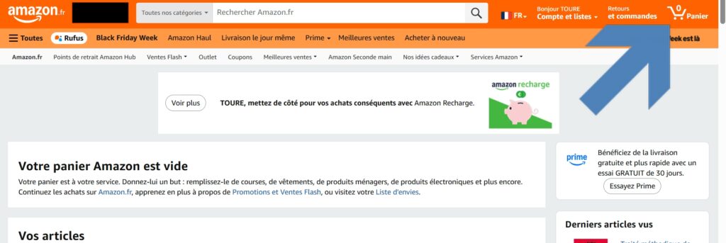Accéder au panier Amazon et repérer l’article à supprimer